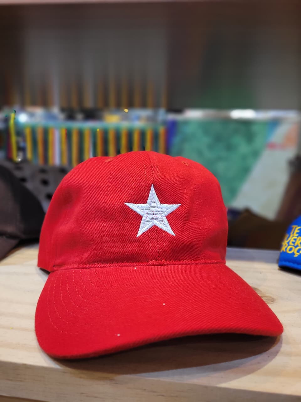 O boné vermelho da Te Quero Troças, com a estrela branca bordada, é um acessório de estilo marcante e design confortável. A peça transmite personalidade, força e pertencimento, sendo um item que se destaca pela simplicidade e pelo símbolo icônico, capaz de evocar identificação e atitude de quem o veste, de forma elegante e discreta.