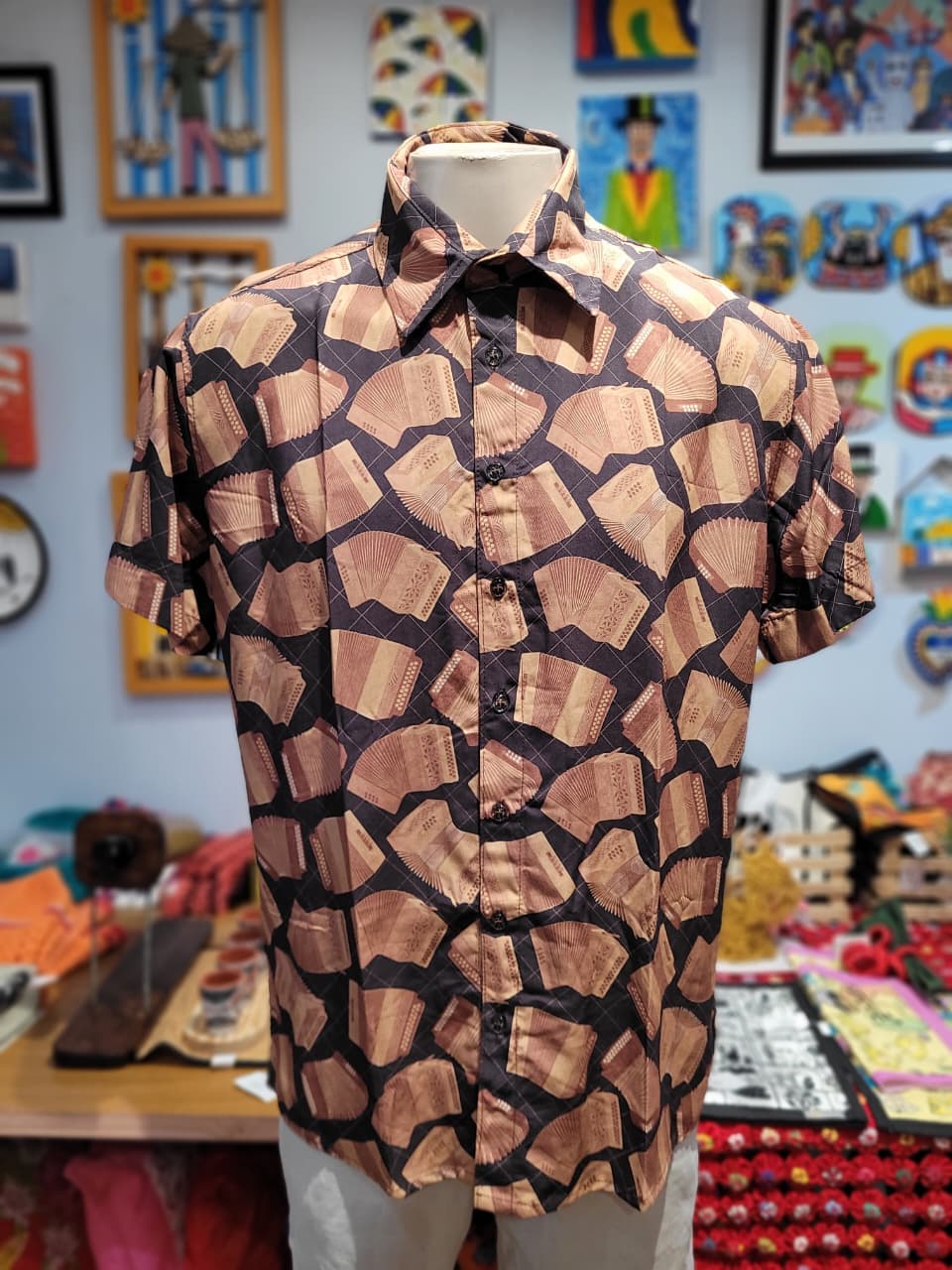 A camisa Oito Baixos da Ramys é uma celebração da música tradicional do Nordeste e da estética criativa que marca as coleções da marca. Inspirada no som e na presença do instrumento sanfona (de oito baixos), a estampa traz ritmo, cultura e identidade regional transformados em moda autoral. Confeccionada em tecido leve — típico das camisas da Ramys — a peça oferece caimento fluido, conforto e estilo para o uso diário. Ideal para quem quer vestir arte, música e tradição com atitude e personalidade no visual.