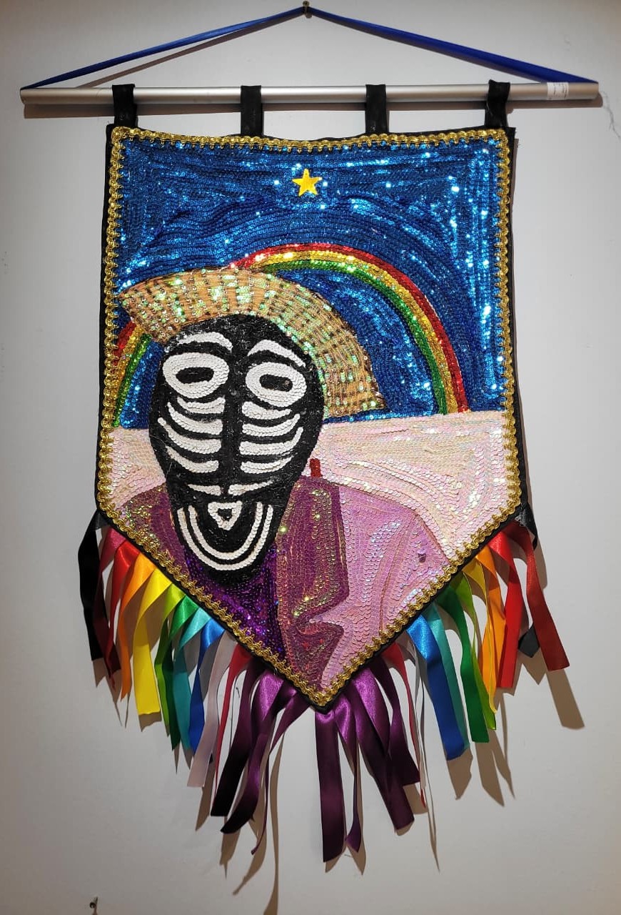 Estandartes da artista Marta Girão, trabalhados com sensibilidade artesanal e inspirados nas imagens e símbolos da cultura popular. Cada peça, com suas cores e formas, encarna a memória coletiva e celebra as tradições do povo. A partir da simplicidade do artesanato, Marta traduz para arte visual a riqueza das histórias populares, conectando identidade, criatividade e pertencimento.