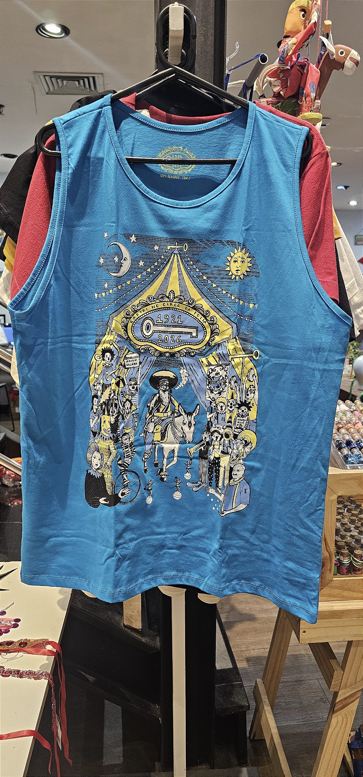 A Camisa Cariri Olindense 2026 celebra o tema “Cariri no Circo da Folia”, anunciando a troça como um espetáculo grandioso. A arte assinada por Nando ZV simboliza a fusão entre o mundo circense e a folia carnavalesca, convidando foliões a vestirem essa magia. Com cores vibrantes e design teatral, a peça homenageia a tradição e convida todos a abrir as cortinas para o Carnaval de Olinda.